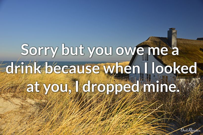 Your enchanting beauty caused me to lose my drink, so you owe me one.
