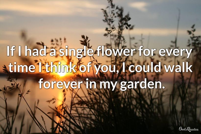 Thinking about you is like walking through a garden with beautiful flowers.
