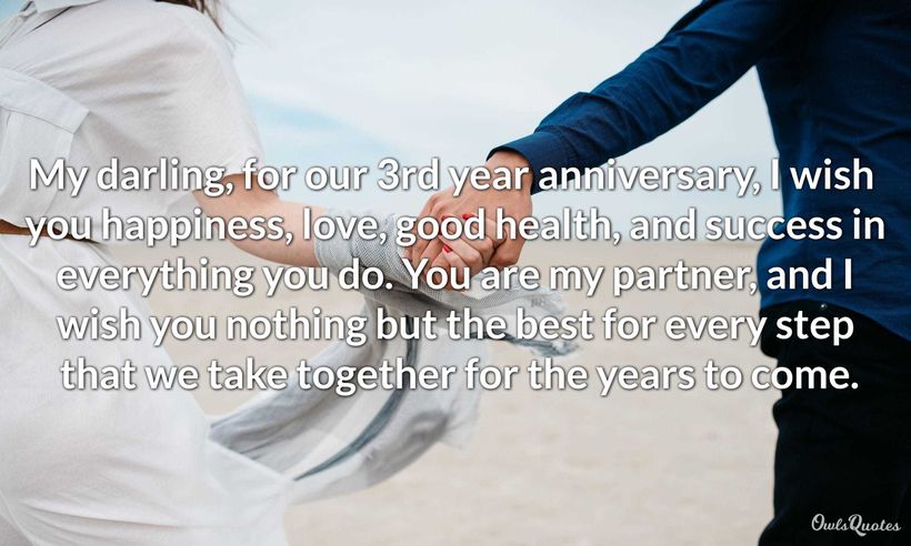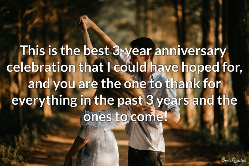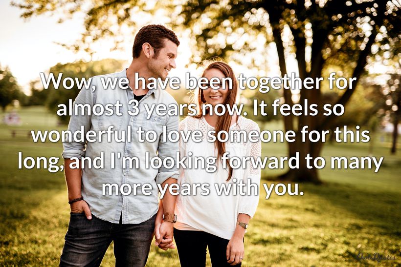 In marriage, the 3rd Anniversary is a mark of reaching the flexible durability phase. You'll compromise in your relationship as you learn each other more. There's the tradition of giving gifts like leather to symbolize this milestone. But you can also celebrate by sending 3 years together quotes to your partner. Likewise, express your feelings with completed 3 years of relationship quotes.