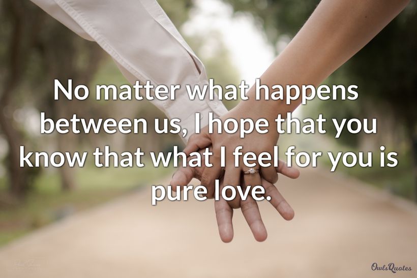 When your feelings for someone are very strong, you show them love, understanding, and support. There is no room for judging them by their past. Pure love quotes show us that partners who feel pure love are just happy for sharing the future with their partner.